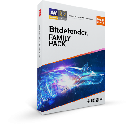 Licenta retail Bitdefender Family Pack – protectie anti-malwarecompleta pentru toata familia, disponibila pentru Windows, macOS, iOS si Android, valabila pentru