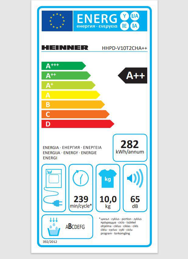 Uscator de rufe cu pompa de caldura Heinner HHPD-V10T2CHA++, Capacitate