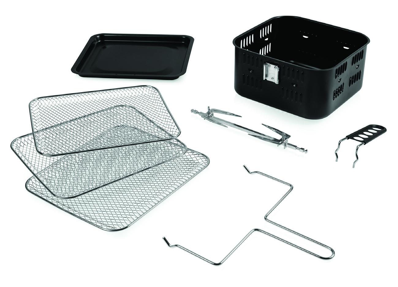 Cos pentru gatire Rafturi pentru preparare cu aer cald, 3 buc Tija rotisor Maner pentru rotisor Tava pentru scurgerea uleiului |