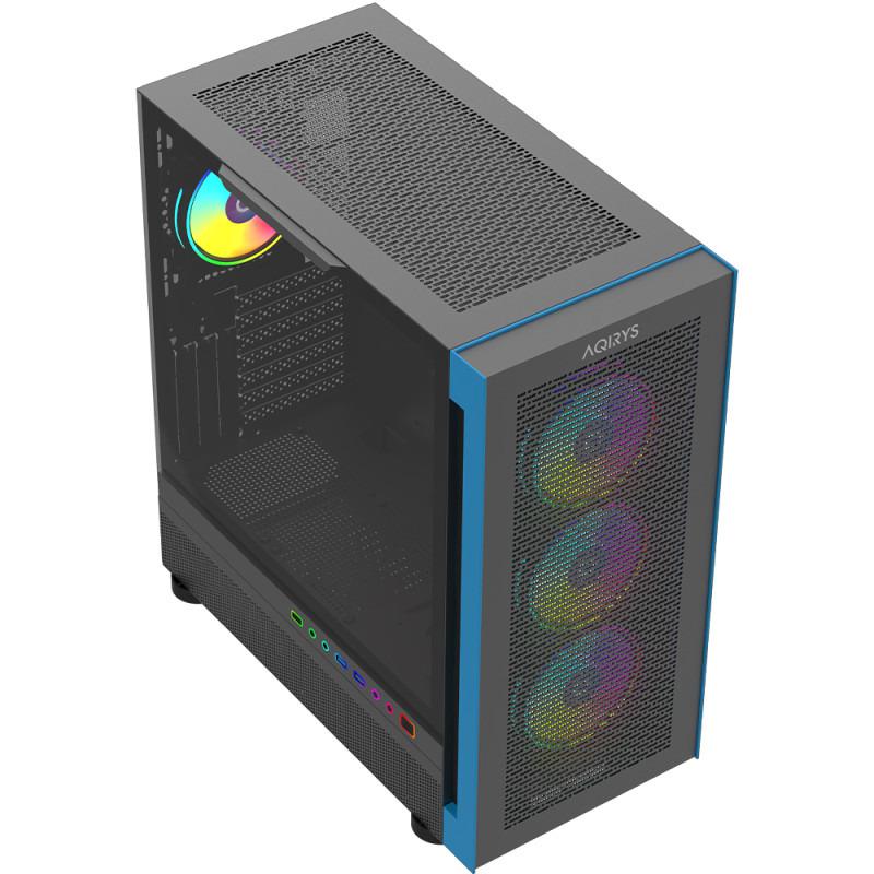 Carcasa Aqirys Sargas Mid Tower, 2x bays 3.5″, 4x bays 2.5″, panou lateral tempered glass, fan controller integrat, 4 ventilatoare incluse, 9 ventilatoare compatibile