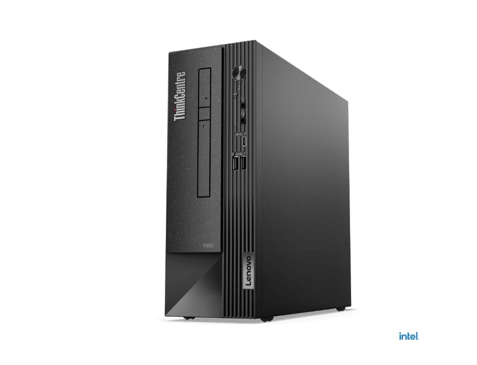 Desktop ThinkCentre neo 50s G4, SFF 7.4L , Intel Core i3-13100, 4C (4P + 0E) / 8T, P-core 3.4 / 4.5GHz, 12MB, Memorie: 1x 16GB UDIMM DDR4-3200, HDD: 512GB SSD M.2 2280 PCIe 4.0×4 NVMe Opal 2.0, Graphics: Integrated Intel UHD Graphics 730, Optical: 9.0mm DVD, WLAN + Bluetooth: Intel AX201, 11ax 2×2 + BT5.1, Keyboard: USB Calliope Keyboard, Black, English (EU), Mouse:USB Calliope Mouse, Black, Card Reader: 7-in-1 Card Reader, Porturi: Front Ports: 1x USB-C 3.2 Gen 1 (support data transfer and 5V@3A charging), 2x USB 3.2 Gen 1, 1x headphone / microphone combo jack (3.5mm),1x microphone (3.5mm),Rear Ports: 2x USB 2.0, 2x USB 3.2 Gen 1 (one supports Smart Power On), 1x HDMI 2.1 TMDS, 1x DisplayPortTM 1.4, 1x VGA, 1x Ethernet (RJ-45), 1x line-out (3.5mm), Ethernet:Integrated 100/1000M, Dimension WxDxH: 100 x 308 x 274.8 mm, Power Supply: 180W 85%, Greutate: Around 6.35 kg, Garantie:3-year, Carry in, Sistem Operare: Windows 11 Pro Educational